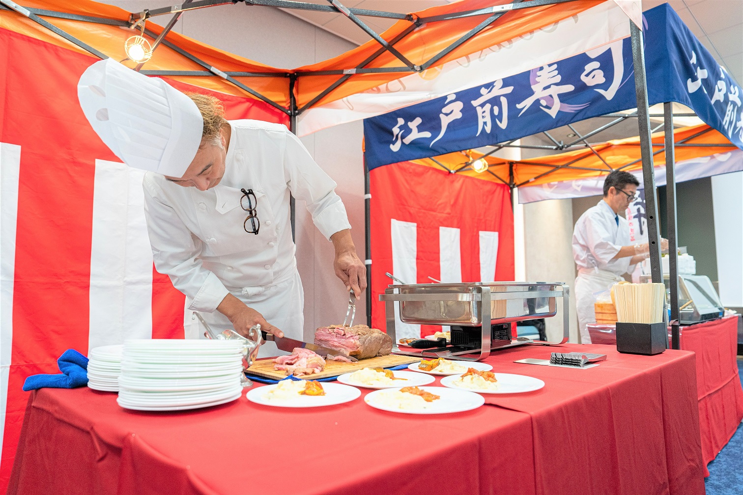 サービススタッフも法被を着用し、お祭りのような雰囲気で懇親会をお楽しみいただきました。